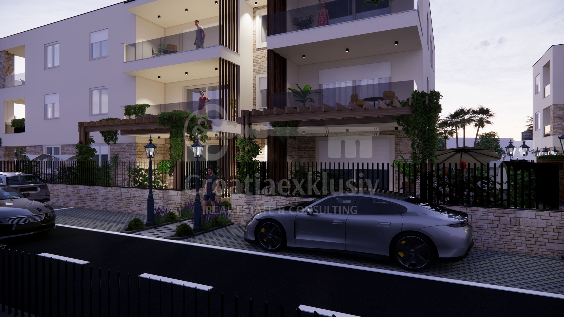 Zum Verkauf stehen mehrere moderne und hochwertig ausgestattete Wohnungen in einem Neubau in Brodarica, nur 50 Meter vom Meer entfernt.