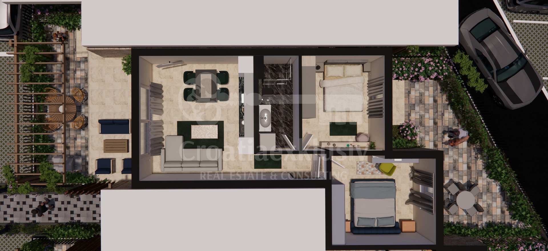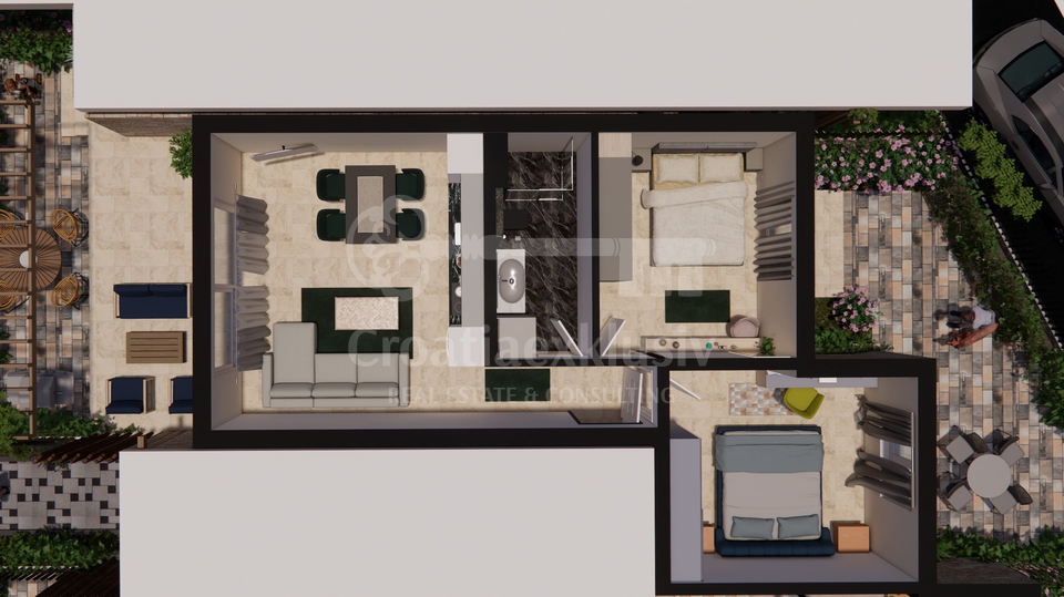 For sale is a modern and spacious ground-floor apartment in a newly built complex in Brodarica, ideal for family living or as an investment for tourist rental.