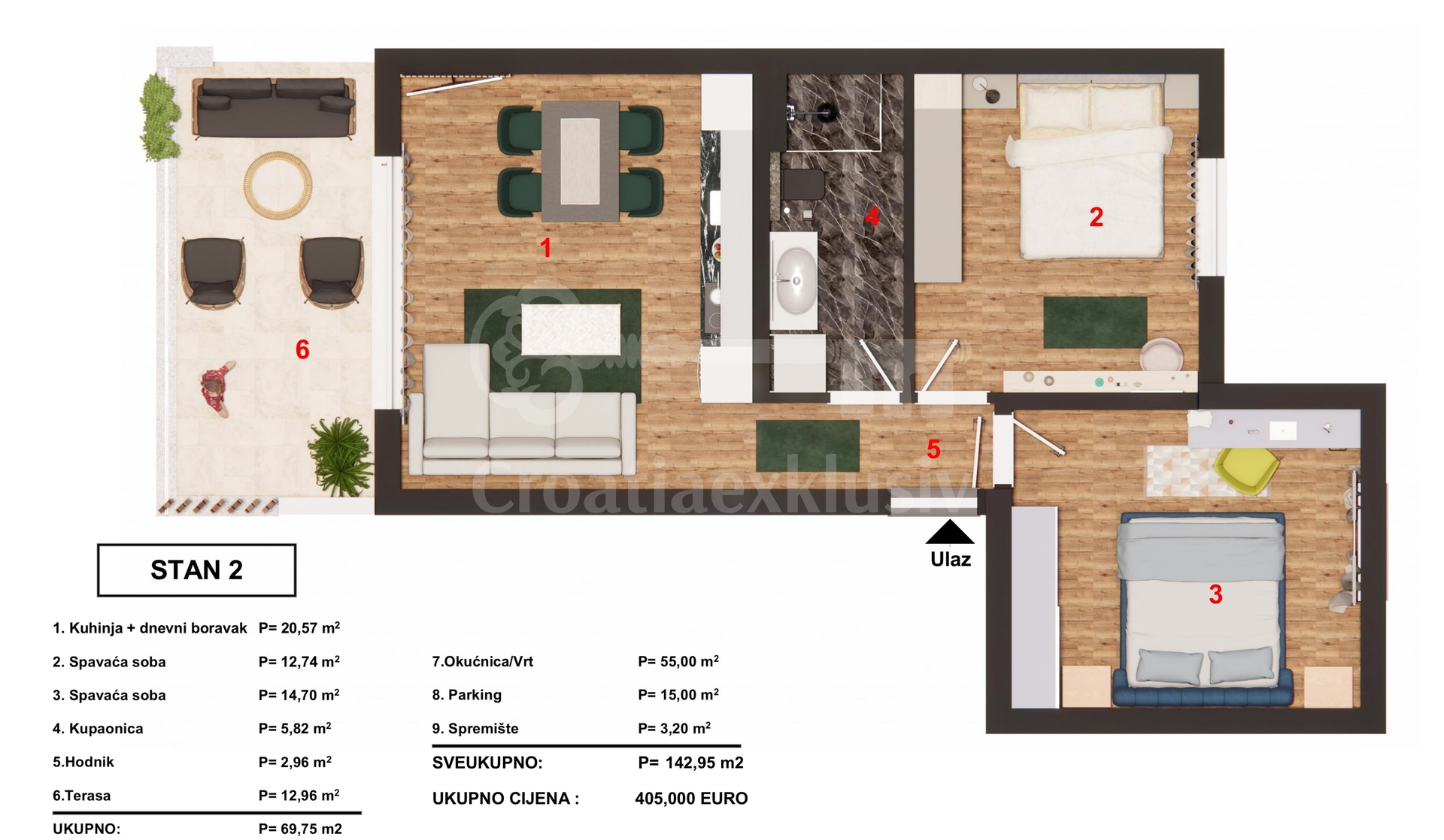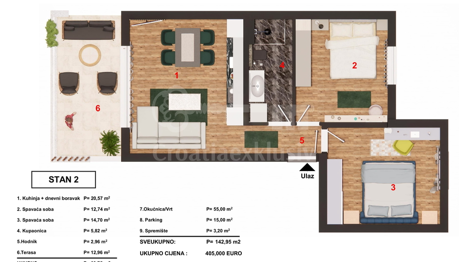 Total area: 142.95 m2