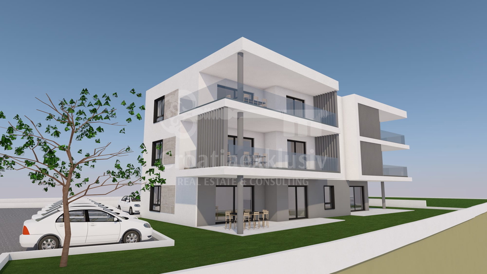 Prodaje se luksuzan trosoban stan S6 u novogradnji u Tribunju, svega 400/500 metara od mora i plaže.