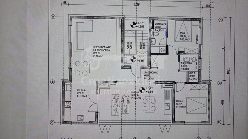 - 	Površina: 107,16 m2 + lođa 25,57 m2