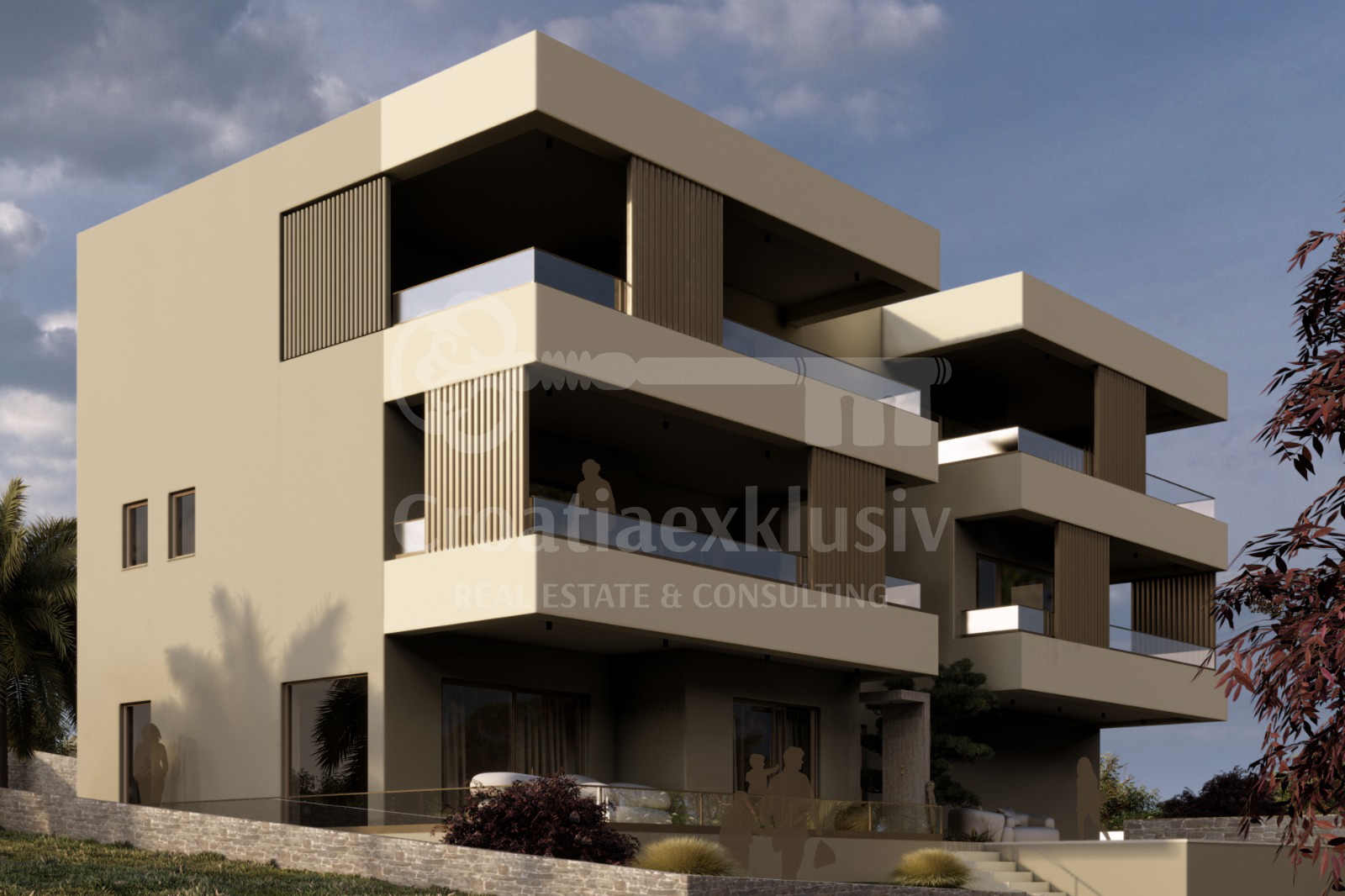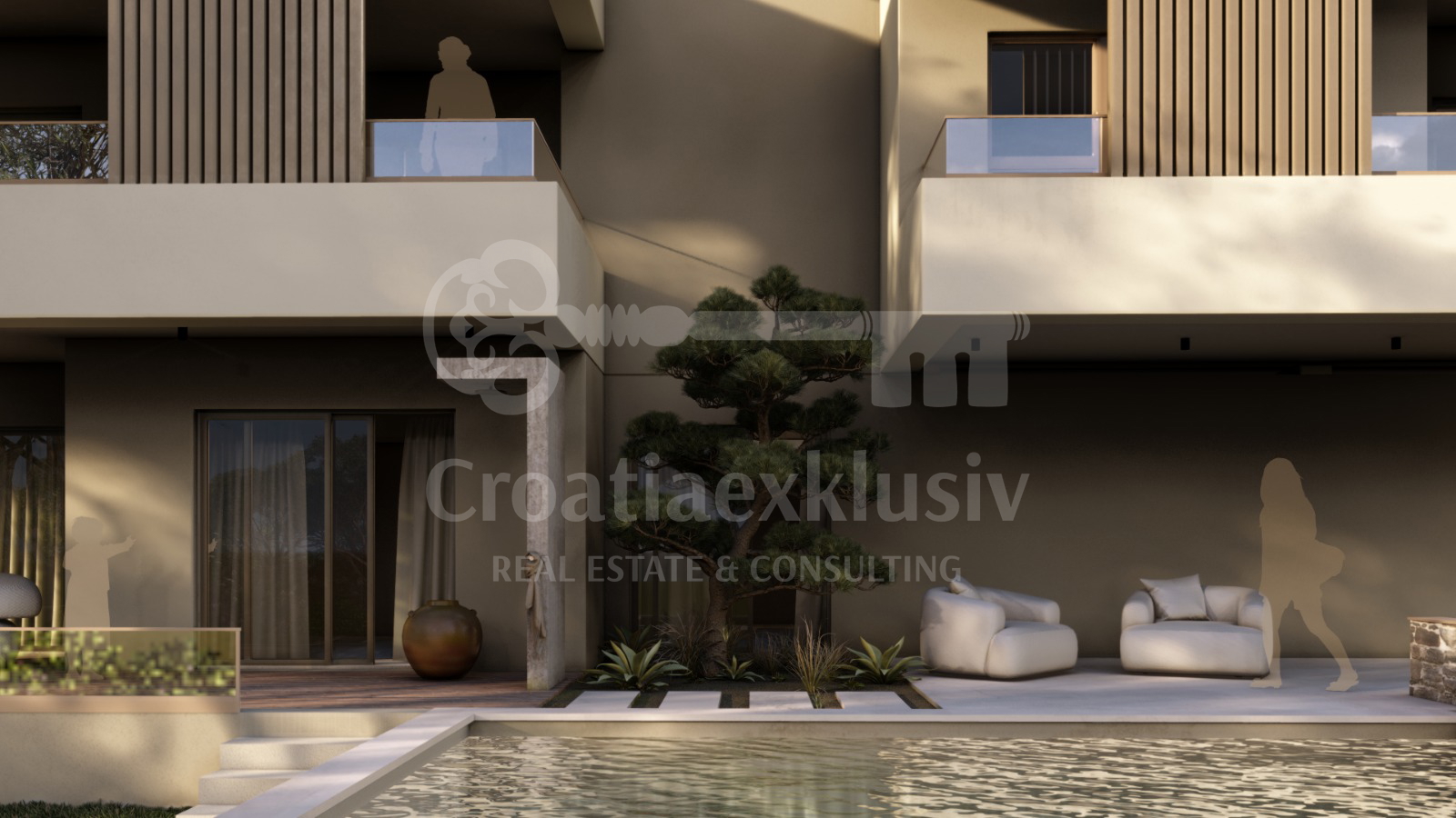 1KR3 – 130,29 m2 – 716.595 € – Whirlpool – 1 Garage/Stellplatz Napomena: PR1 je jedini stan s privatnim bazenom i vrtom. Svi stanovi imaju natkrivene terase i pripadajuće parkirno mjesto/garažu.