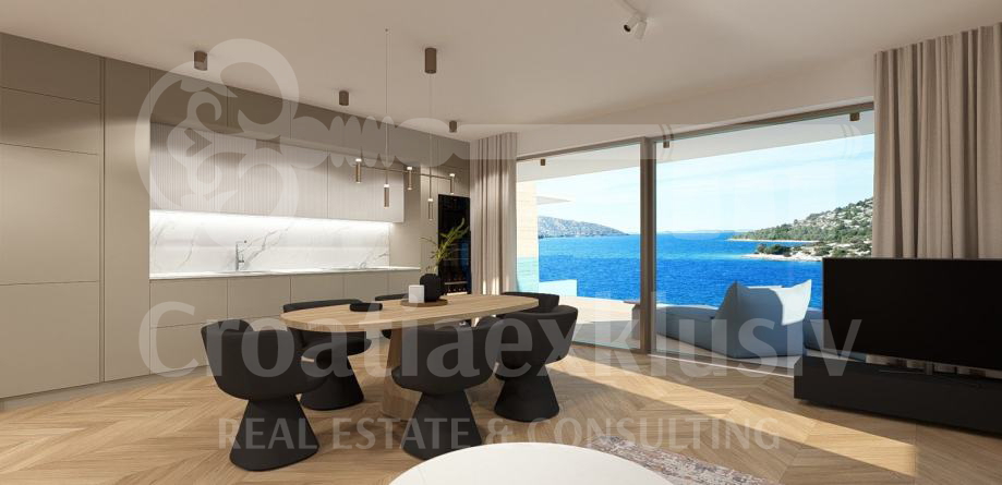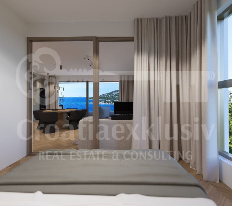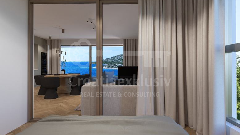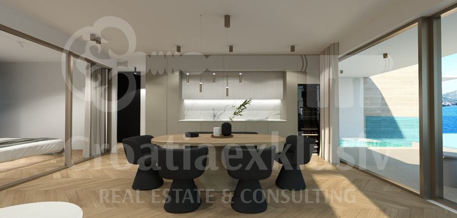 - Staklene stijene u dnevnim prostorima omogućavaju obilje prirodnog svjetla i nesmetan pogled na more iz svakog dijela stana