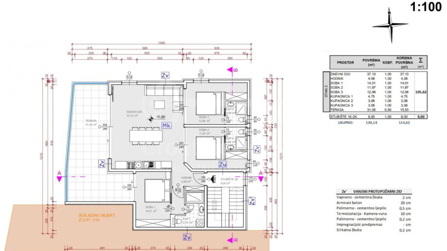 - S3 – 114,00 m2 | 3 spavaće sobe | 2 kupaonice | Prostrani dnevni boravak s izlazom na terasu s privatnim bazenom (12 m2) – 800.000 €