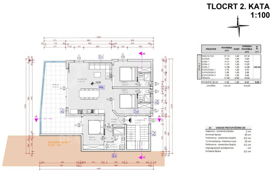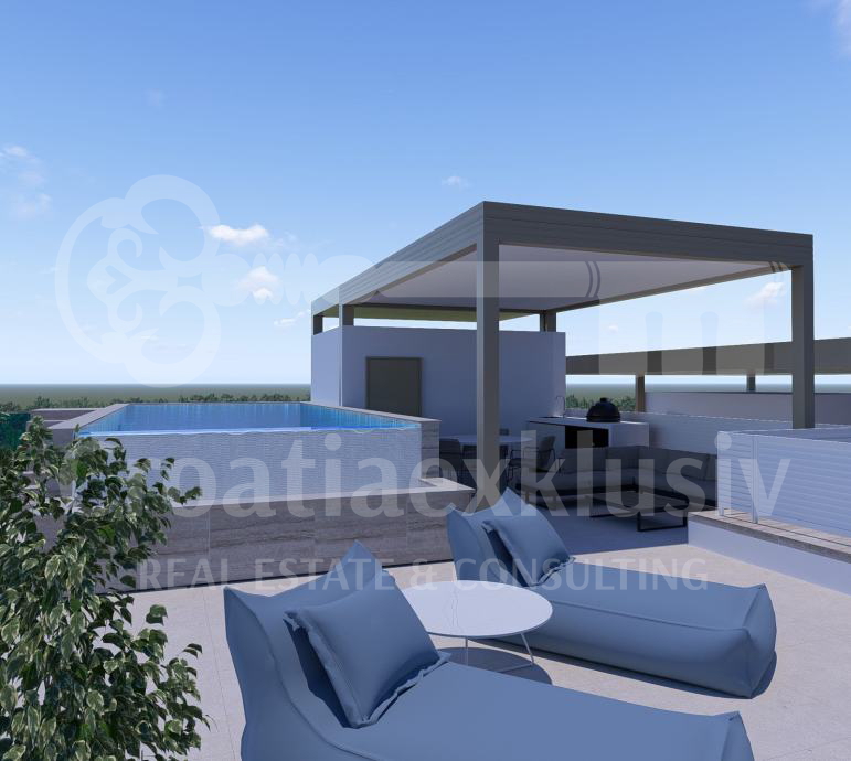 - S2 – 110,00 m2 | 3 spavaće sobe | 3 kupaonice | Prostrani dnevni boravak s izlazom na terasu s privatnim bazenom – 780.000 €