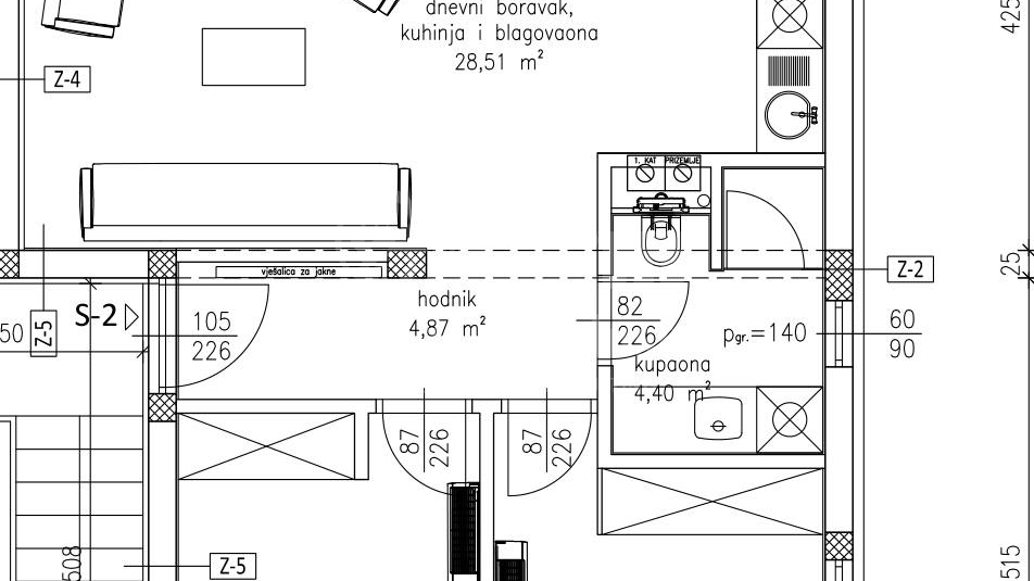 - 	Predsoblje s dovoljno prostora za garderobu i pohranu